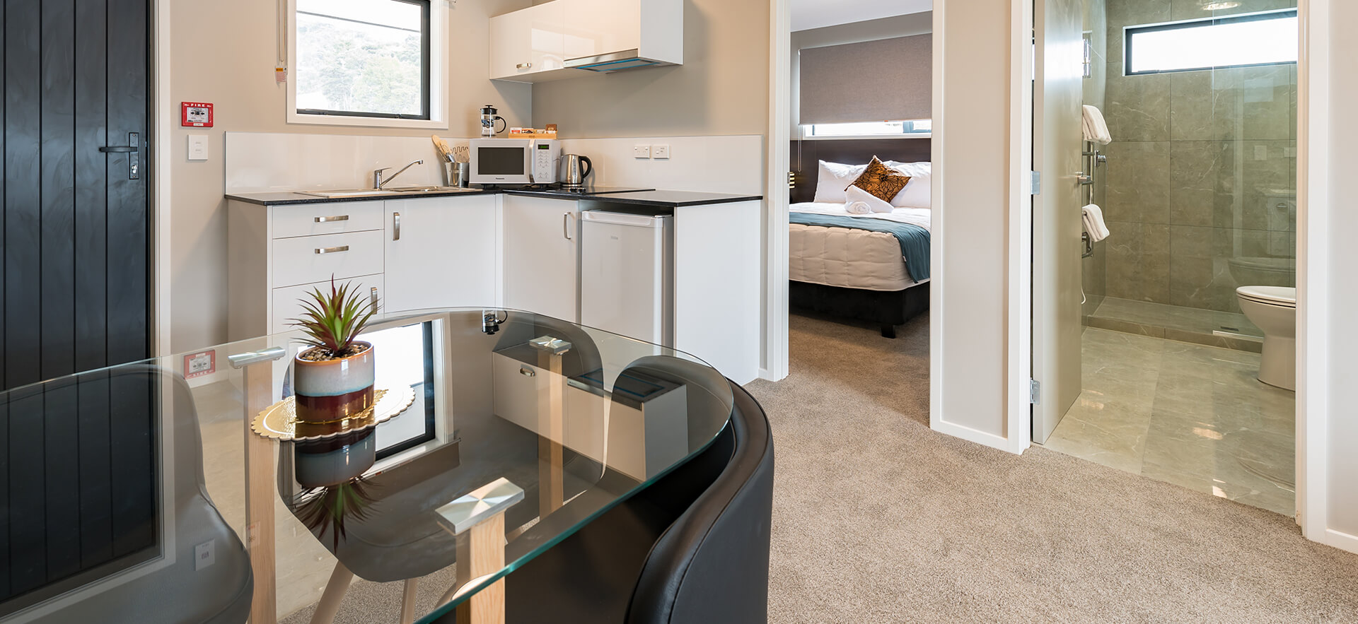 - One Bedroom Apartment – Includes separate lounge and full kitchen facilities