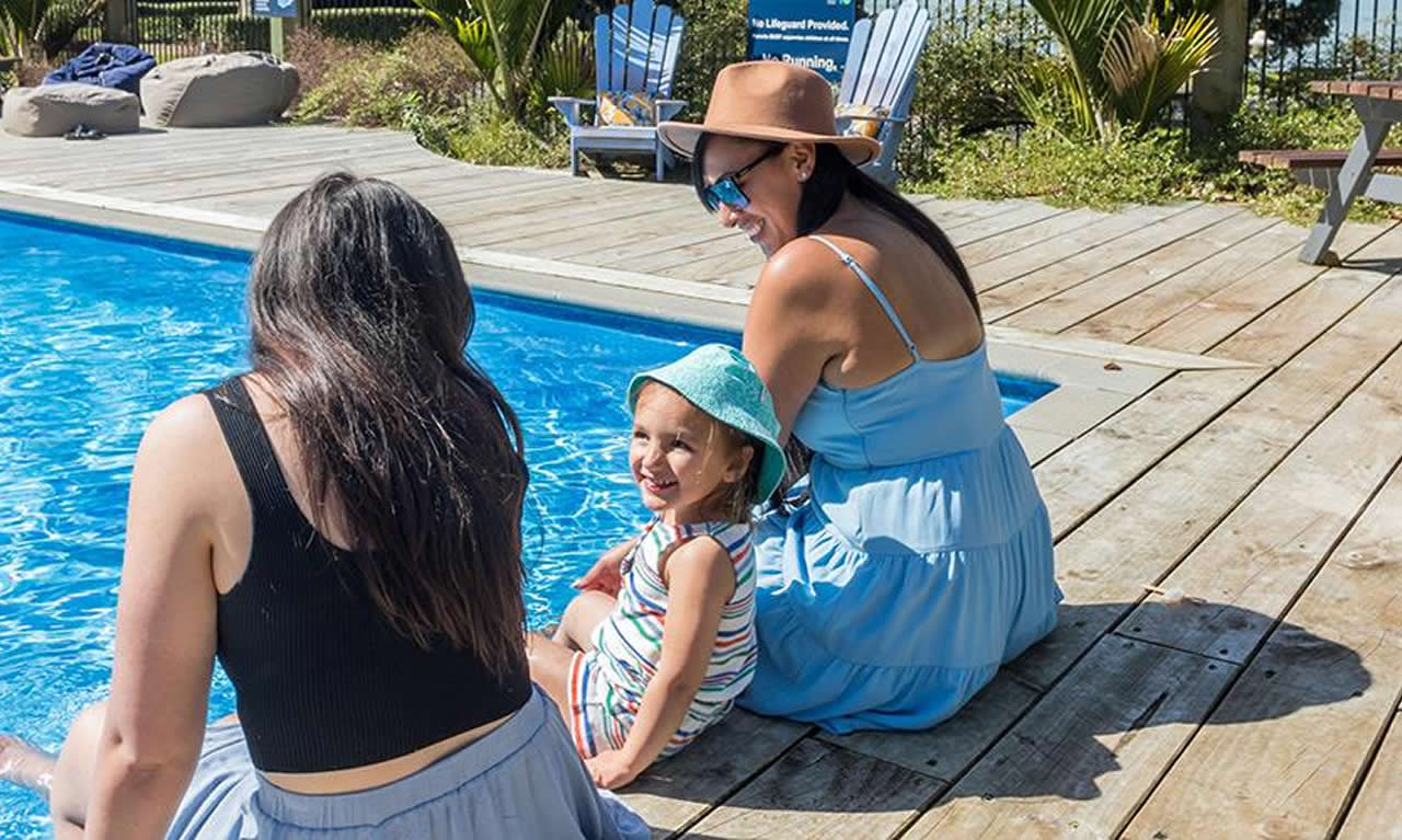 The holiday park is located at 1290 Paihia Road, Paihia, 0247, Bay of Islands. It benefits from a tranquil waterfront position bordered by native bush, which gives a sense of natural peace while still being close enough to enjoy town facilities and the many things to do in Paihia. The setting lets guests relax by the water, soak up scenery, and yet easily access shops, dining and tours.