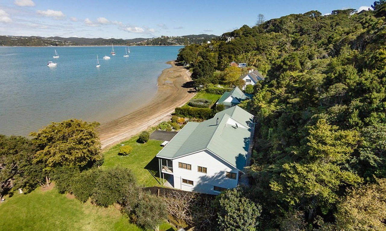 Woodies Retreat offers large-group accommodation in a peaceful waterfront setting, delivering a rare blend of seclusion and access. Just under 8 km from Russell, this beach front house is tucked into native bush, where road noise is absent and the front lawn meets the high-tide mark — so you can truly feel you’ve stepped away from everyday life.