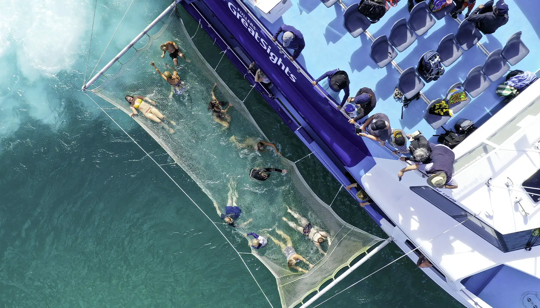 The cruise departs at 10am from Paihia (10:10am from Russell) and runs for 7 hours. It operates seasonally from late October through April, with daily departures during the peak summer period (late December through March) and a reduced schedule (Tuesdays, Thursdays, Saturdays, Sundays) at the start and end of the season. The morning portion takes you out to the Hole in the Rock at Motukōkako, past the Cape Brett Peninsula and lighthouse. The crew watches for dolphins, whales, and seals throughout, and Fullers is one of only two operators licensed by the Department of Conservation to view marine mammals. The marine mammal viewing guarantee applies: if you don’t spot any during the cruise, you get a free return trip (voucher valid 12 months, subject to availability). After reaching the Hole in the Rock (and traveling through it when conditions allow), the boat stops at Otehei Bay on Urupukapuka Island for 1.5 hours. Standard island stop: swimming, walking tracks, kayak hire in peak season, and the Otehei Bay Bar & Café for food and drinks. The afternoon section is where this cruise differs from the shorter Hole in the Rock trip. Instead of heading straight back, the boat follows the original Cream Trip route through the inner islands. You pass the unique Black Rocks (volcanic formations), the historic Marsden Cross (site of the first European settlement in New Zealand), and cruise through the sheltered waters where mail and supplies were once delivered to island communities. Weather and conditions permitting, you also get a chance to try boom-netting. This involves lying in a net that’s deployed from the back of the boat while it’s moving, getting dragged through the water. It’s surprisingly fun and something unique to this region. Boom-netting isn’t suitable for children under 5, and kids aged 5-12 need adult accompaniment.Who Is It Good For?